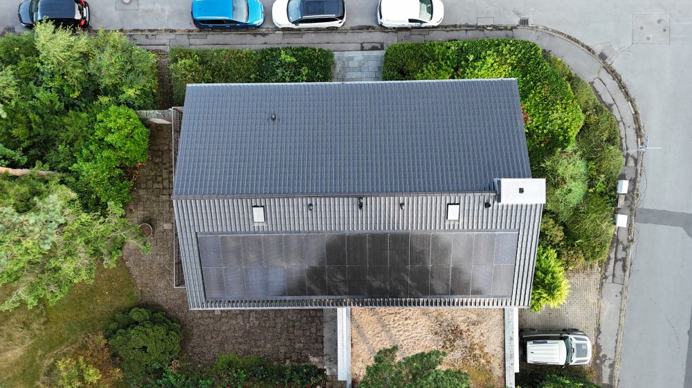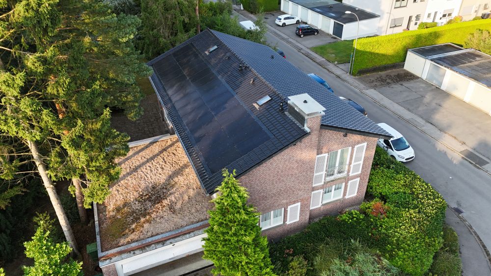 In Aachen-Brand haben wir die Steildachflächen eines Einfamilienhauses komplett neu eingedeckt und die oberste Geschossdecke energetisch gedämmt. Neben der optischen Aufwertung stand vor allem die Verbesserung der Energieeffizienz im Vordergrund. Auf der Rückseite des Gebäudes installierten wir zusätzlich eine dachintegrierte Braas Indax Solaranlage mit 30 Modulen und einer Leistung von 11,25 kWp. In Kombination mit einer BYD-Speichereinheit ermöglicht die Anlage eine nachhaltige Stromversorgung und erhöht den Eigenverbrauch deutlich – ein Projekt, das Handwerk und moderne Solartechnik optimal verbindet.