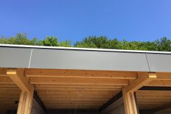 Wohnhaus in Woffelsbach - Flachdach mit Konstruktiver Wärmedämmung und Bituminöser Abdichtung - Attikbekleidung außen Rockpanel und Abdeckung aus vorbewittertem Titanzink.